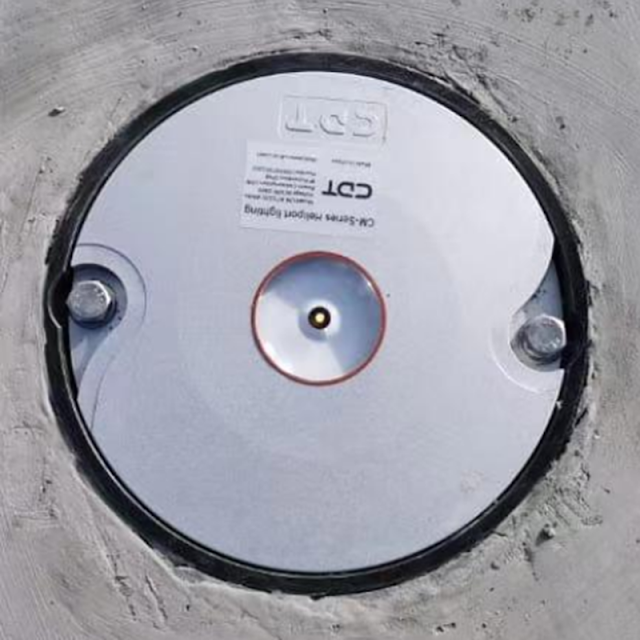 The heliport FATO white recessed lights placed on the helipad surface provide the pilot with a clear visual indication of the landing area, enabling precise landings and takeoffs. to help identify designated areas and runway boundaries